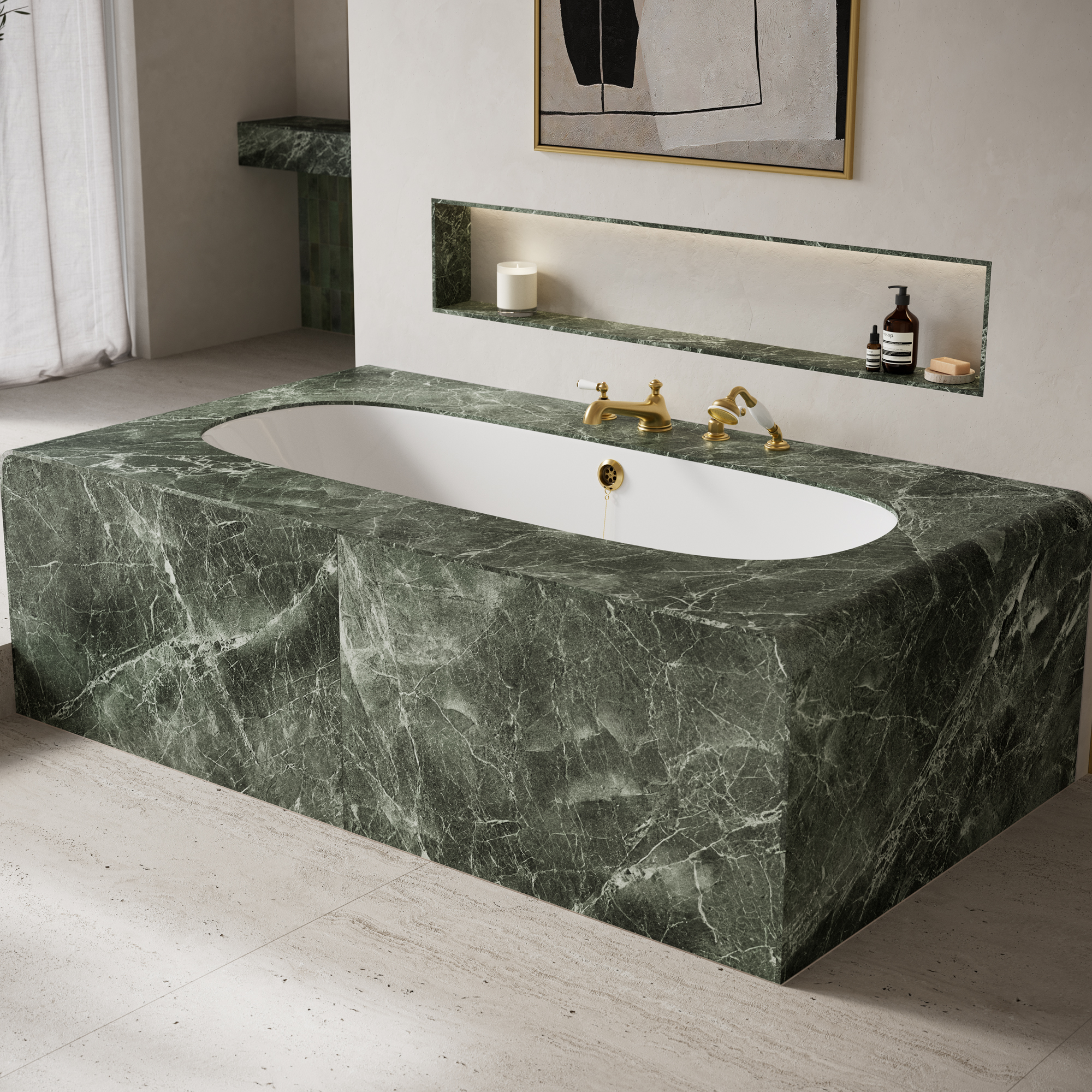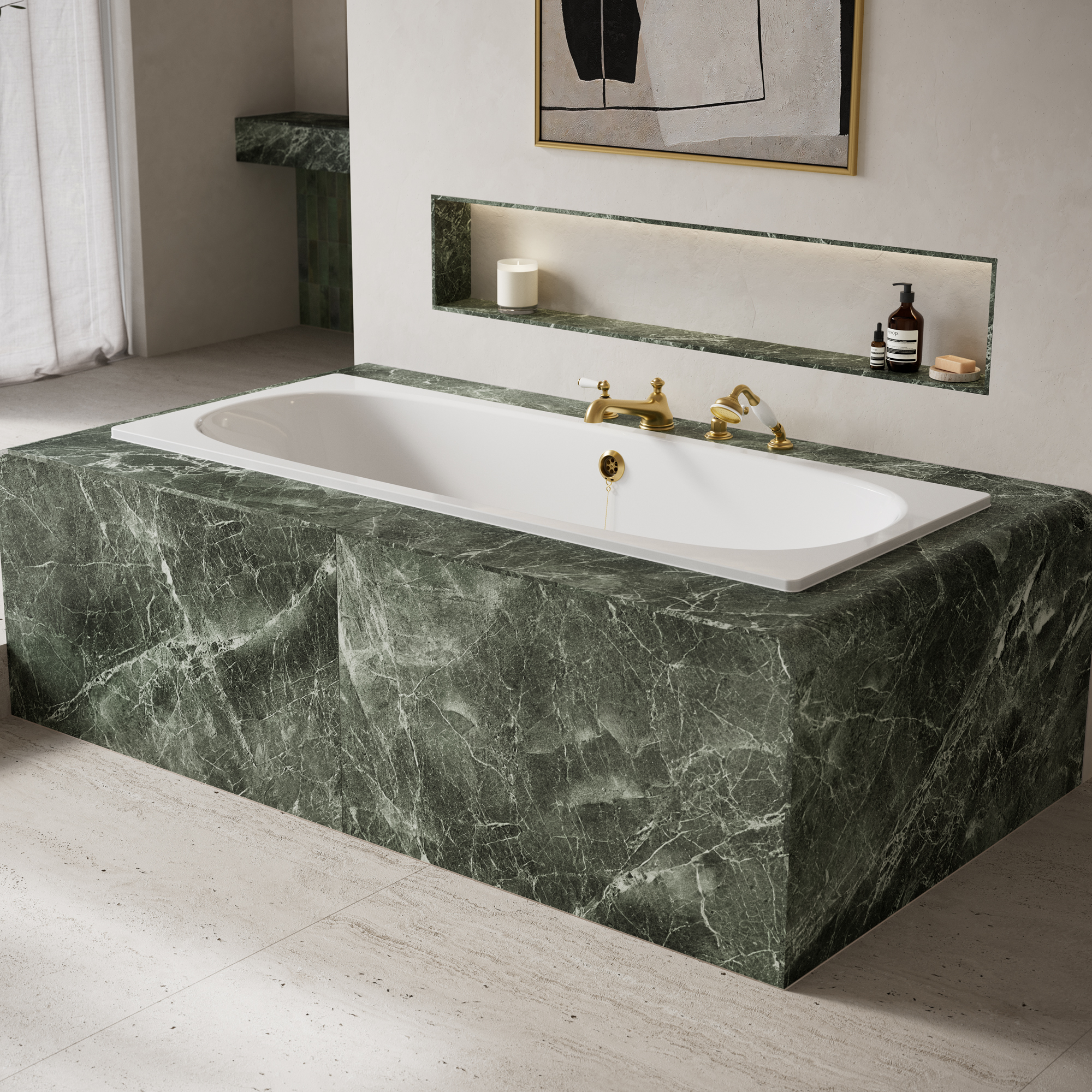 Lussari 1700 is a built in bath designed for spaces where architecture and bathing merge into a single, seamless gesture. The oval form echoes the soft, calming geometry that defines the Lussari aesthetic. Every curve is ergonomically sculpted for deep, enveloping comfort. Whether undermounted or dropped in, each bath becomes part of the room’s structure, offering a sense of quiet sophistication.