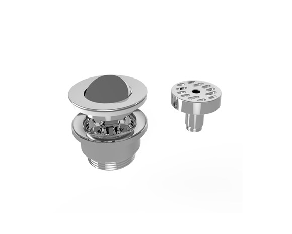 Système d’évacuation universel pour vasque avec bonde à clapet rotatif et insert pour écoulement libre.