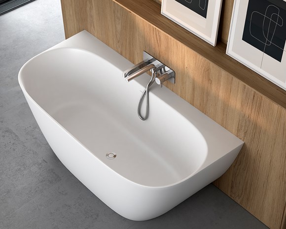 La baignoire semi-îlot murale Lussari 1600 est un choix de style intelligent pour les salles de bains disposant d’un espace réduit. La simplicité de sa forme sculpturale combinel’aspect et la sensation iconiques de labaignoire îlot avec l’ingéniosité d’un design moderne et peu encombrant. Installée contrele mur pour assurer l’étanchéité, elle est dotée d’une plateforme spacieuse pour lemontage de la robinetterie et le rangement des objets de luxe de la salle de bains.