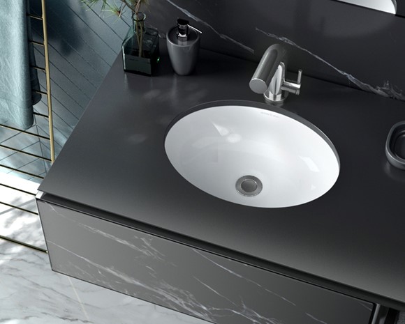 A deep oval basin designed for undermount installation. The Kaali 46 features an internal overflow and is now available in two additional sizes - see Kaali 60 and Kaali 65. Also available in washstand format - see Metallo 61 Quartz.